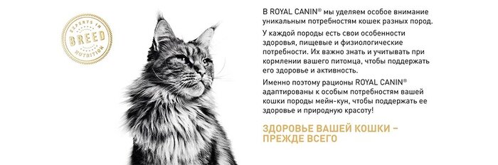 Формула продукта ROYAL CANIN® Maine Coon Adult разработана с учетом индивидуальных потребностей кошек породы мейн-кун. Будьте уверены: мы так же, как и Вы, заботимся о том, чтобы Ваш мейн-кун питался правильно!