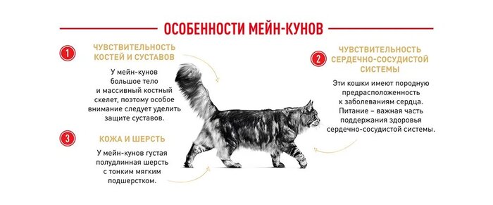 4) Здоровая кожа и шерсть: Кошки породы Мэйн Кун обладают густой полудлинной шерстью и тонким мягким подшерстком. Содержит специальный комплекс нутриентов для здоровья кожи и шерсти, включающий аминокислоты, витамины, жирные кислоты Омега 3 и Омега 6