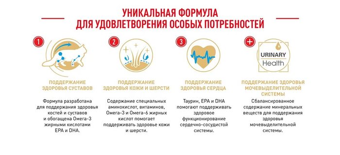 5) Здоровая мочевыделительная система: Разработан для поддержания нормальной работы мочевыделительной системы взрослой кошки за счет сбалансированного содержания минералов.